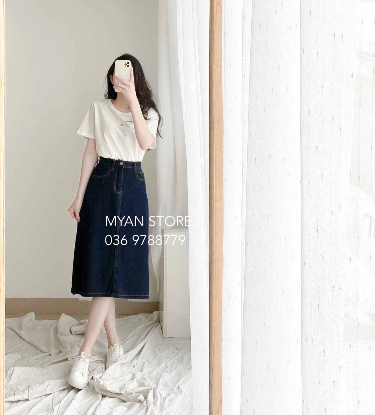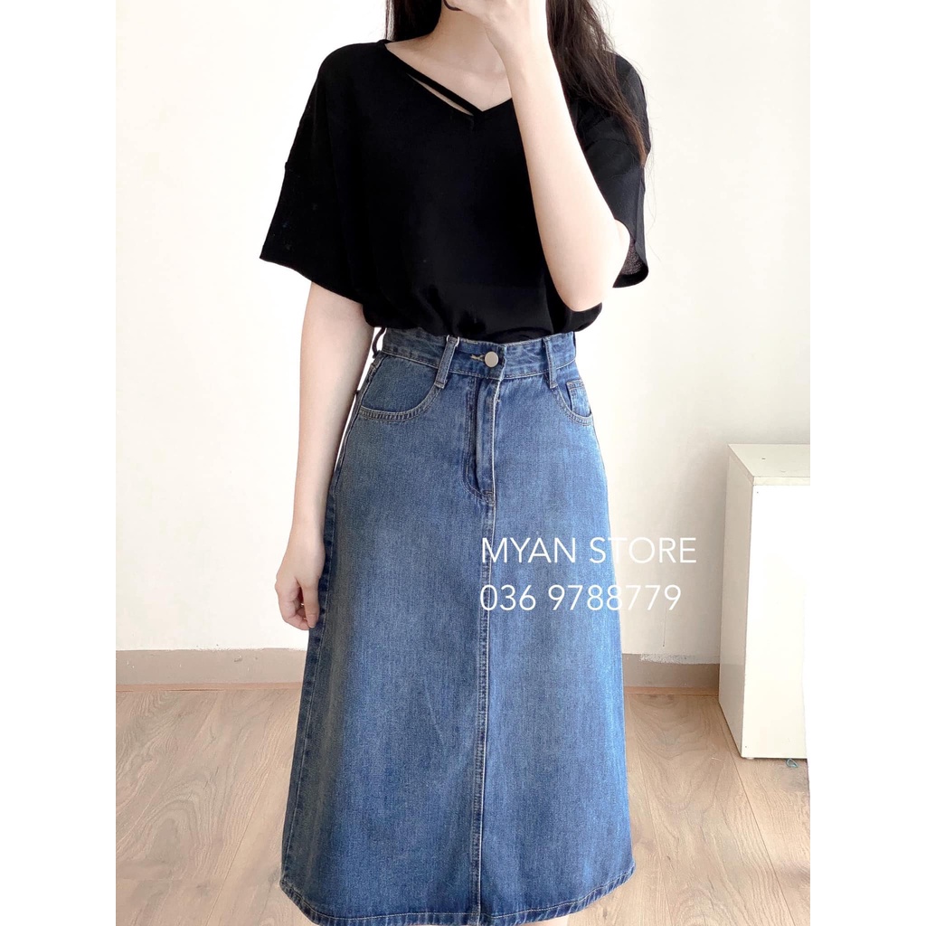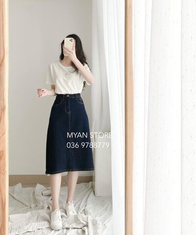 Chân váy jean Đuôi Cá Lưng Cao Dáng Chữ A Thời Trang Xuân Hè
